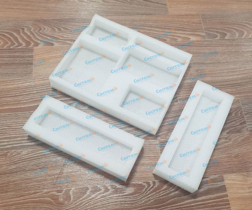 Несшитый пенополиэтилен является упругим, легким и прочным материалом. Из него можно изготовить вкладыши различного дизайна и высоты. Последнее возможно благодаря его многоуровневой структуре: части ложемента можно вырезать отдельно и после склеить в нужном порядке.